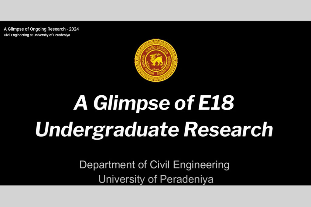 The undergraduate research publication titled “Queue Length Generation Due to U-Turn Vehicles at Central Openings of Divided Highways Using Time Series Approach” authored by WMHP Wijesundara, KMPKB Kulathunga and WMVSK Wickramasinghe has won the 2nd Runner-up [Open Category] in the “Best Research Awards-2024” competition organized by the Institute of …