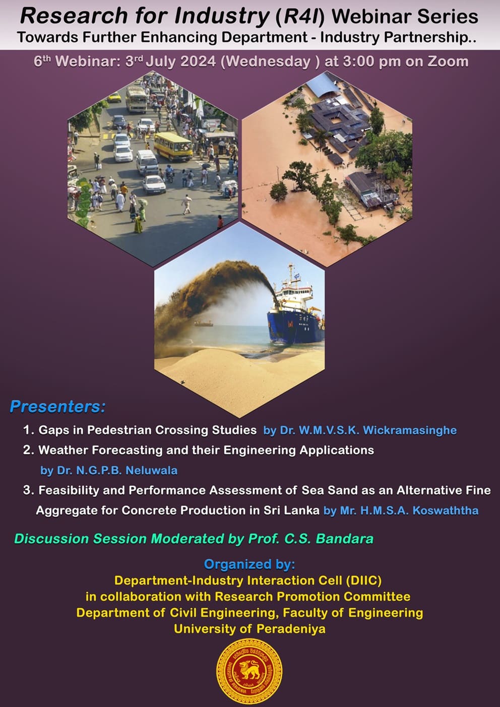 6th session of the Research for Industry (R4I) webinar series organized by The Department-Industry Interaction Cell (DIIC) in collaboration with the Research Promotion Committee will be held on 03rd July 2024, 3:00 pm.