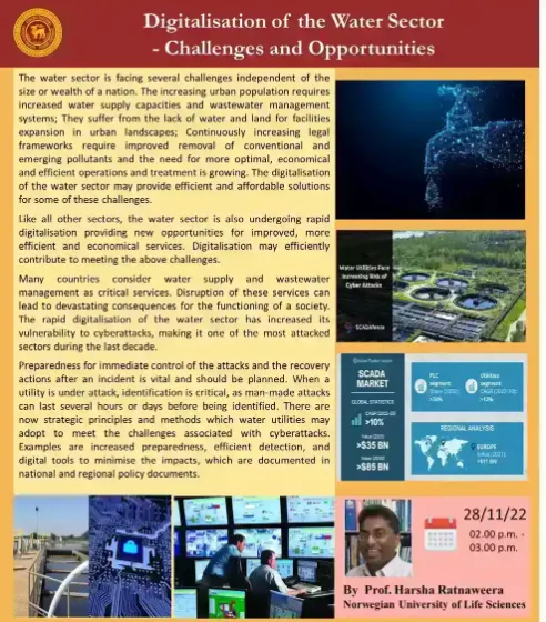 A Research Seminar (ONLINE) on “Gaps in Pedestrian Crossing Studies” by Dr. W.M.V.S.K. Wickramasinghe Research promotion subcommittee, Department of Civil Engineering will have their next department research seminar (ONLINE) on 31st October 2022, from 2.00 pm to 3.00 pm. We welcome all …