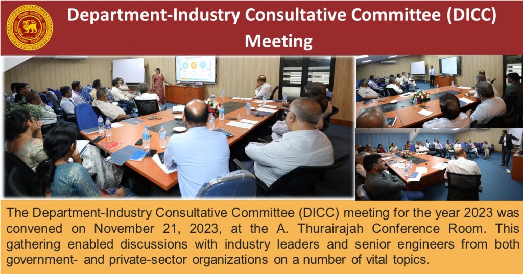 The 2023 Department-Industry Consultative Committee (DICC) meeting convened on November 21, 2023, at the A. Thurairajah Conference Room. This collaborative gathering brought together industry leaders and senior engineers from government- and private-sector organizations for fruitful discussions with the academic staff of the Department of Civil Engineering. The meeting featured three insightful presentations: