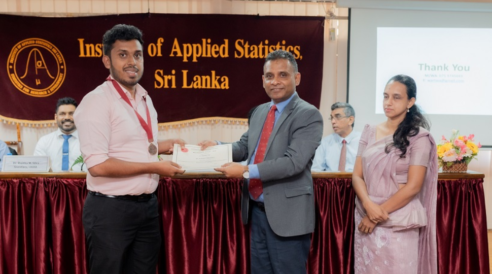 The undergraduate research publication titled “Queue Length Generation Due to U-Turn Vehicles at Central Openings of Divided Highways Using Time Series Approach” authored by WMHP Wijesundara, KMPKB Kulathunga and WMVSK Wickramasinghe has won the 2nd Runner-up [Open Category] in the “Best Research Awards-2024” competition organized by the Institute of Applied Statistics of Sri Lanka (IASSL).